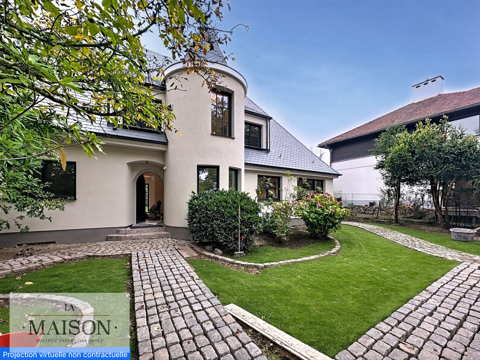 With a habitable surface of approximately 350 m² set on a south-facing plot of about 5 ares, it offers generous volumes, abundant natural light and premium finishes.